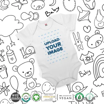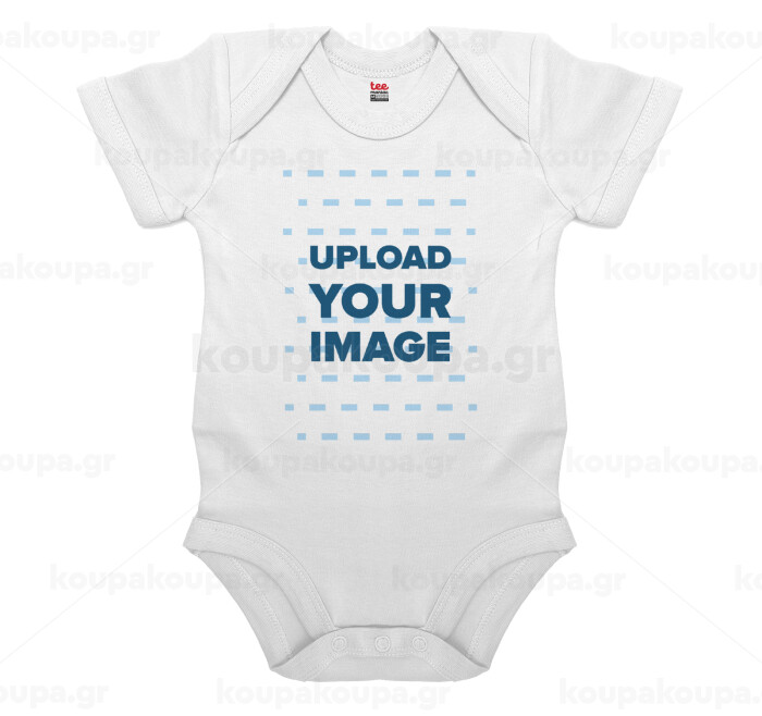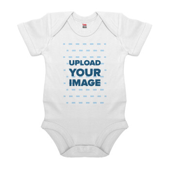 Upload your logo, Βρεφικό φορμάκι μωρού, 0-24 μηνών, ΛΕΥΚΟ, 100% Organic Cotton, κοντομάνικο