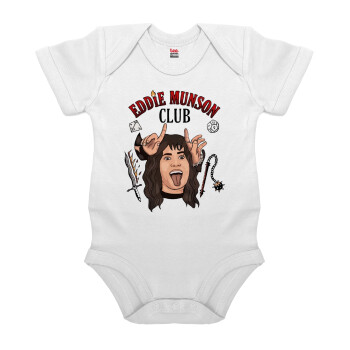 Eddie Munson, Hellfire CLub, Stranger Things, Βρεφικό φορμάκι μωρού, 0-24 μηνών, ΛΕΥΚΟ, 100% Organic Cotton, κοντομάνικο