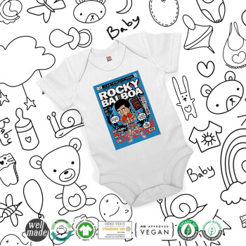 Rocky Balboa, Βρεφικό φορμάκι μωρού, 0-24 μηνών, ΛΕΥΚΟ, 100% Organic Cotton, κοντομάνικο