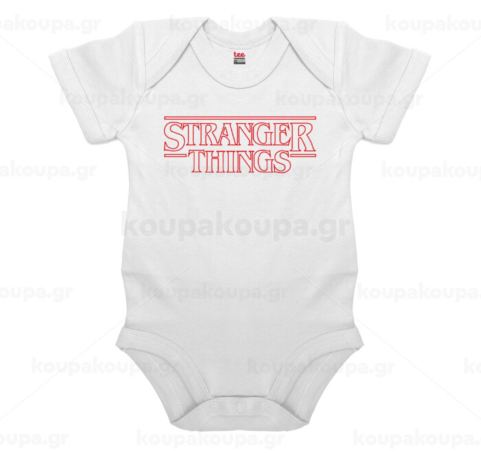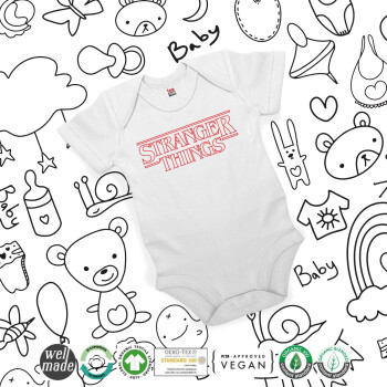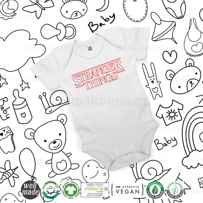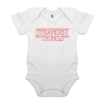Stranger Things Logo, Βρεφικό φορμάκι μωρού, 0-24 μηνών, ΛΕΥΚΟ, 100% Organic Cotton, κοντομάνικο