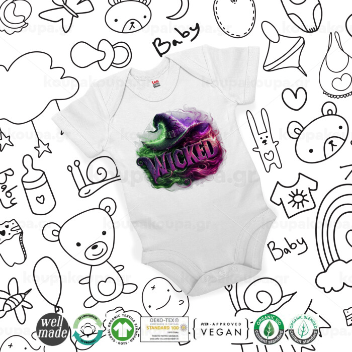 Wicked, Βρεφικό φορμάκι μωρού, 0-24 μηνών, ΛΕΥΚΟ, 100% Organic Cotton, κοντομάνικο