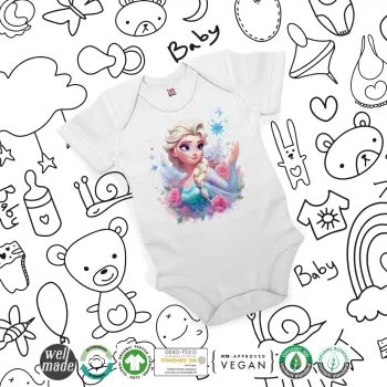 Elsa Princess, Βρεφικό φορμάκι μωρού, 0-24 μηνών, ΛΕΥΚΟ, 100% Organic Cotton, κοντομάνικο