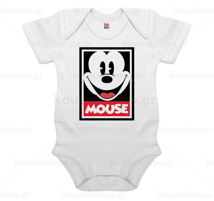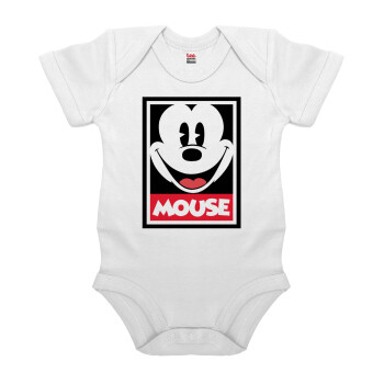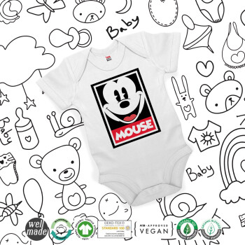 Mickey Mouse, Βρεφικό φορμάκι μωρού, 0-24 μηνών, ΛΕΥΚΟ, 100% Organic Cotton, κοντομάνικο