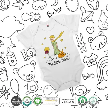 The Little prince classic, Βρεφικό φορμάκι μωρού, 0-24 μηνών, ΛΕΥΚΟ, 100% Organic Cotton, κοντομάνικο