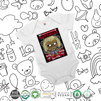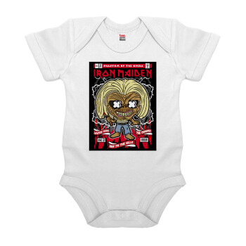 Iron maiden (eddie), Βρεφικό φορμάκι μωρού, 0-24 μηνών, ΛΕΥΚΟ, 100% Organic Cotton, κοντομάνικο