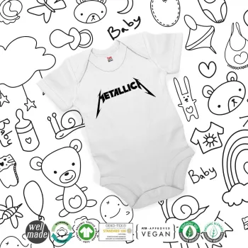 Metallica, Βρεφικό φορμάκι μωρού, 0-24 μηνών, ΛΕΥΚΟ, 100% Organic Cotton, κοντομάνικο