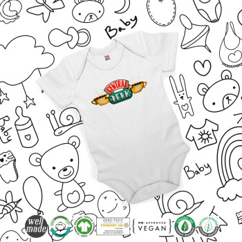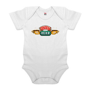 Central perk, Βρεφικό φορμάκι μωρού, 0-24 μηνών, ΛΕΥΚΟ, 100% Organic Cotton, κοντομάνικο