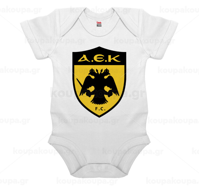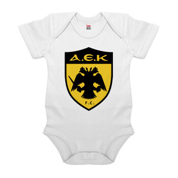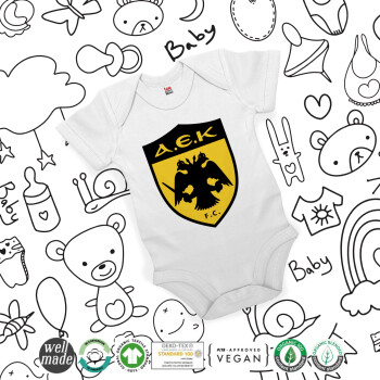 ΑΕΚ, Βρεφικό φορμάκι μωρού, 0-24 μηνών, ΛΕΥΚΟ, 100% Organic Cotton, κοντομάνικο