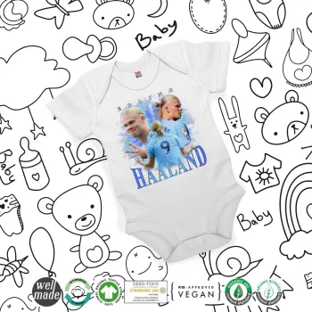 Fabric Weight: 200 g/m²Material: 100% Organic Cotton, ring-spun and combed for a soft textureTreatment: Pre-washed to prevent shrinkageStyle: American-style bodysuit for easy applicationDetails: Rib-knit cuffs for better fitFasteners: 3 nickel-free buttons at the bottom for easy diaper changes, color matched to the fabric