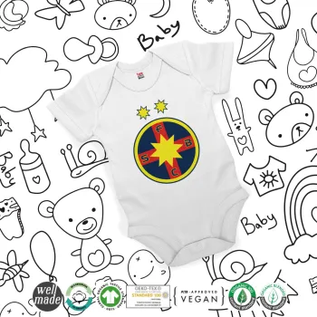 FC Steaua Bucuresti (FCSB), Βρεφικό φορμάκι μωρού, 0-24 μηνών, ΛΕΥΚΟ, 100% Organic Cotton, κοντομάνικο