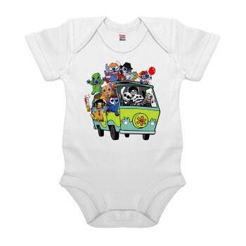 Stitch Halloween scooby car, Βρεφικό φορμάκι μωρού, 0-24 μηνών, ΛΕΥΚΟ, 100% Organic Cotton, κοντομάνικο