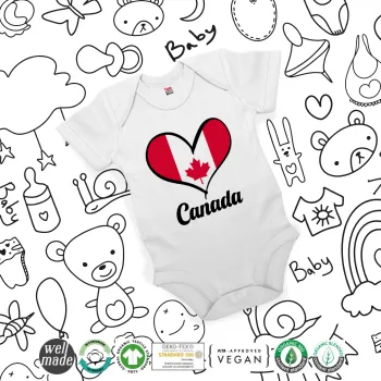 Canada flag, Βρεφικό φορμάκι μωρού, 0-24 μηνών, ΛΕΥΚΟ, 100% Organic Cotton, κοντομάνικο