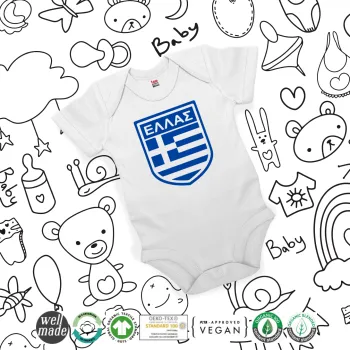 Hellas, Βρεφικό φορμάκι μωρού, 0-24 μηνών, ΛΕΥΚΟ, 100% Organic Cotton, κοντομάνικο