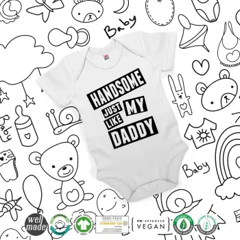 Handsome just like my Daddy, Βρεφικό φορμάκι μωρού, 0-24 μηνών, ΛΕΥΚΟ, 100% Organic Cotton, κοντομάνικο