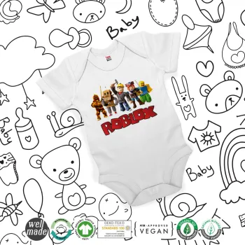 Roblox squad, Βρεφικό φορμάκι μωρού, 0-24 μηνών, ΛΕΥΚΟ, 100% Organic Cotton, κοντομάνικο