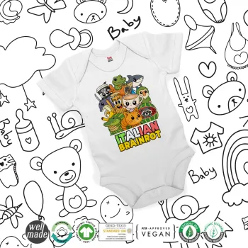 Italian Brainrot friends, Βρεφικό φορμάκι μωρού, 0-24 μηνών, ΛΕΥΚΟ, 100% Organic Cotton, κοντομάνικο