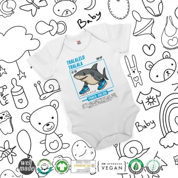 Tralalero Tralala, Βρεφικό φορμάκι μωρού, 0-24 μηνών, ΛΕΥΚΟ, 100% Organic Cotton, κοντομάνικο