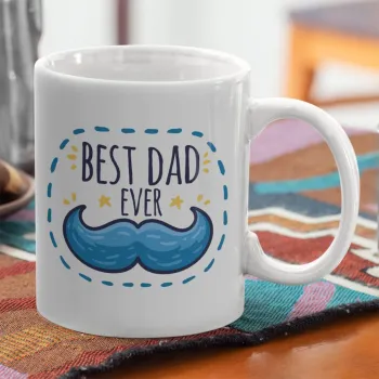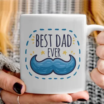 Best dad ever μπλε μουστάκι, Ceramic coffee mug, 330ml