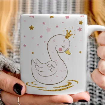 Crowned swan, Mug ceramic, gold mirror, 330ml