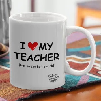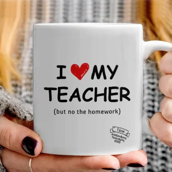 i love my teacher but no the homework, Ceramic coffee mug, 330ml