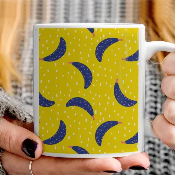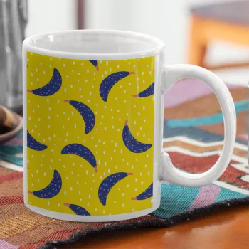 Yellow seamless with blue bananas, Ceramic coffee mug, 330ml