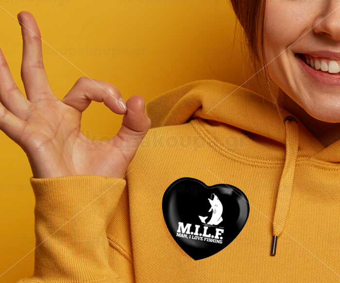 M.I.L.F. Mam i love fishing, Κονκάρδα παραμάνα καρδιά (57x52mm)