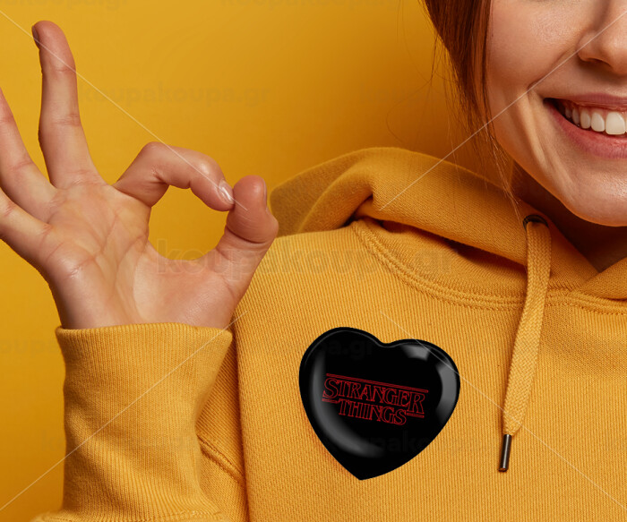 Stranger Things Logo, Κονκάρδα παραμάνα καρδιά (57x52mm)