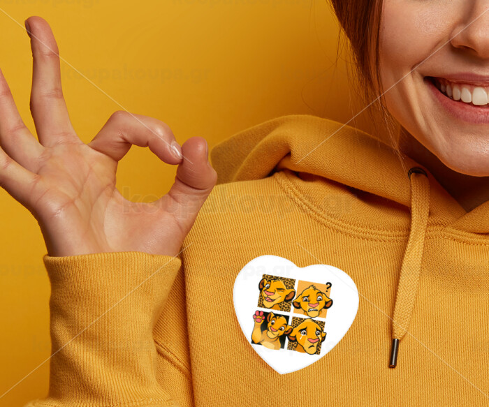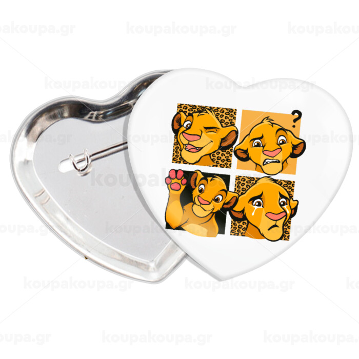 Simba, lion king, Κονκάρδα παραμάνα καρδιά (57x52mm)