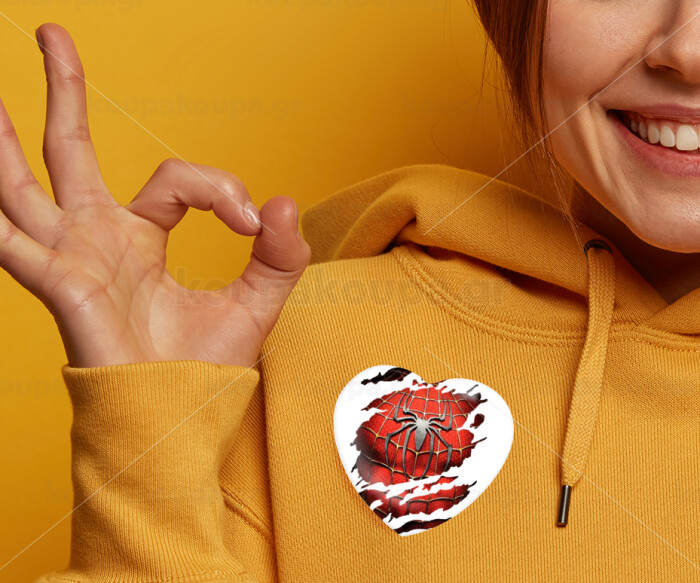 Spiderman cracked, Κονκάρδα παραμάνα καρδιά (57x52mm)