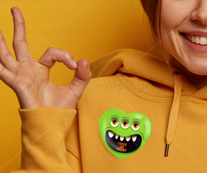 Halloween trick or treat 3 eyes monster, Κονκάρδα παραμάνα καρδιά (57x52mm)
