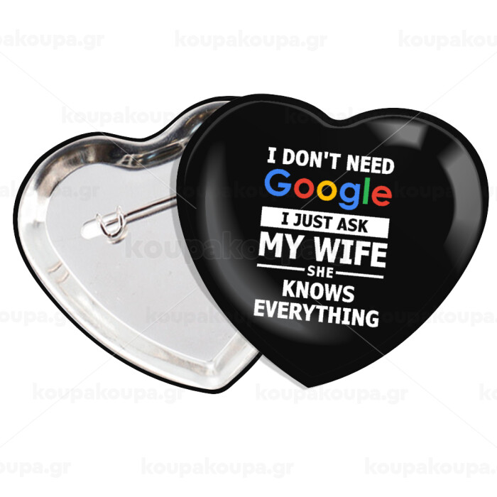 I don't need Google, just ask my WIFE, Κονκάρδα παραμάνα καρδιά (57x52mm)