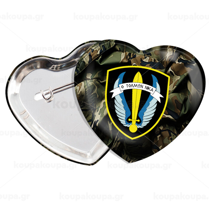 Έμβλημα Μονάδων Καταδρομών Ο Τολμων Νικα - Λοκ, Κονκάρδα παραμάνα καρδιά (57x52mm)