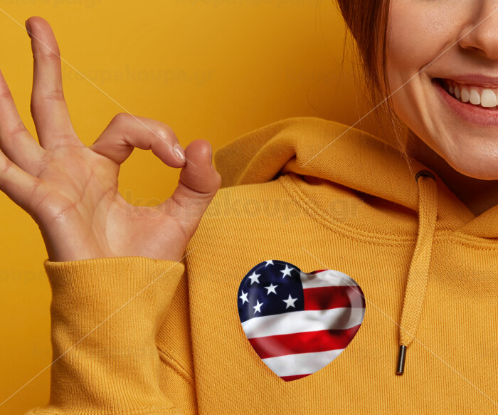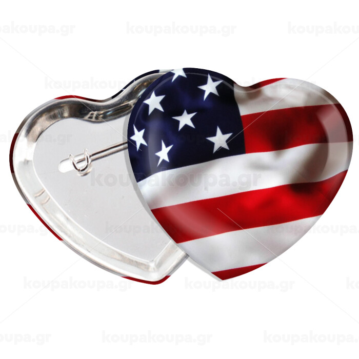 USA Flag, Κονκάρδα παραμάνα καρδιά (57x52mm)