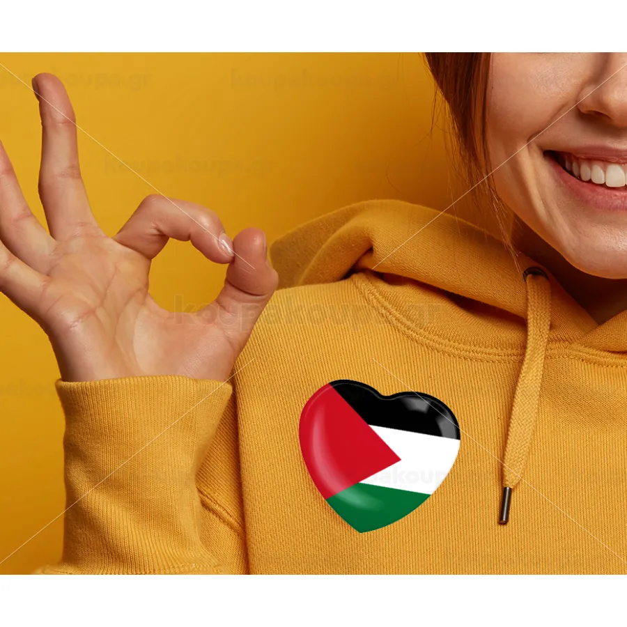 Palestine Flag, Κονκάρδα παραμάνα καρδιά (57x52mm)