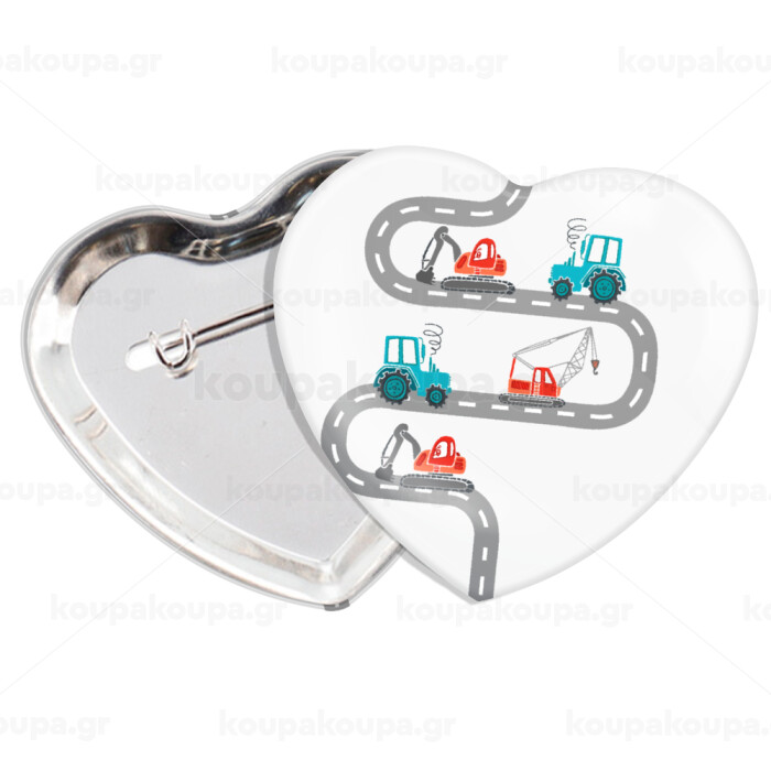 excavator along road, Κονκάρδα παραμάνα καρδιά (57x52mm)