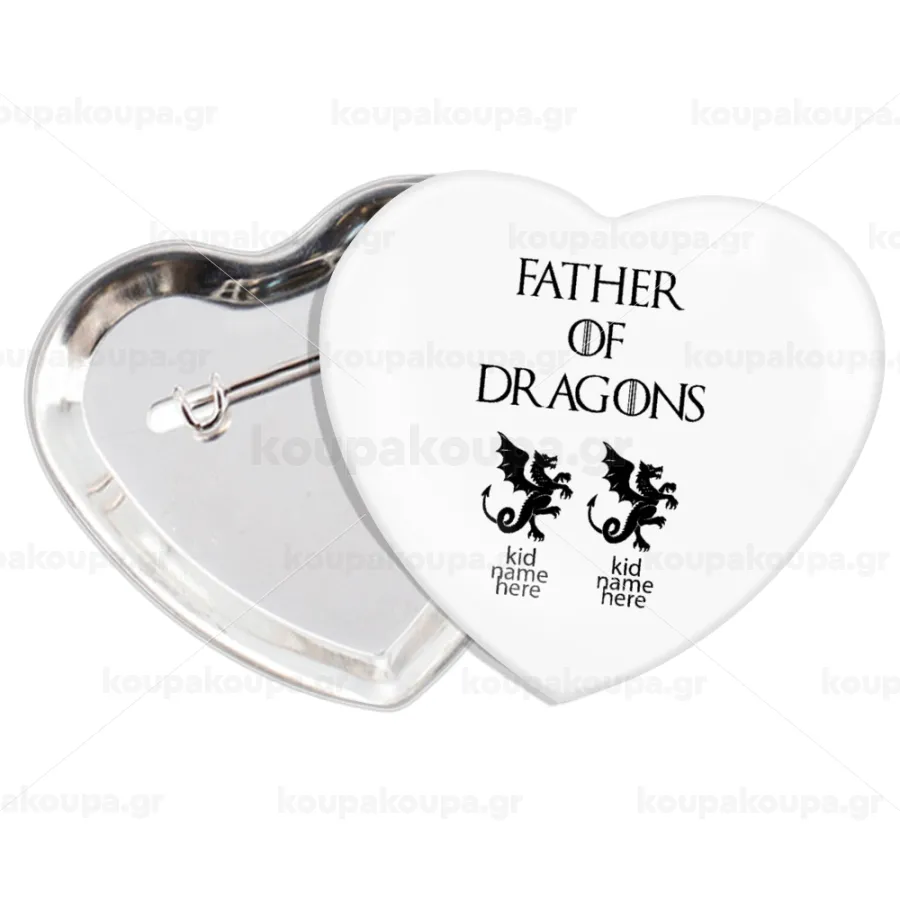 GOT, Father of Dragons (με ονόματα παιδικά), Κονκάρδα παραμάνα καρδιά (57x52mm)