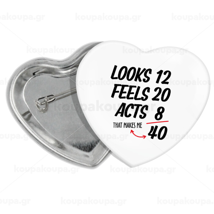 Looks, feels, acts LIKE your AGE, Κονκάρδα παραμάνα καρδιά (57x52mm)