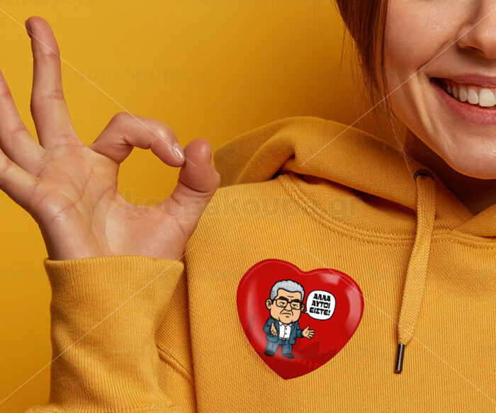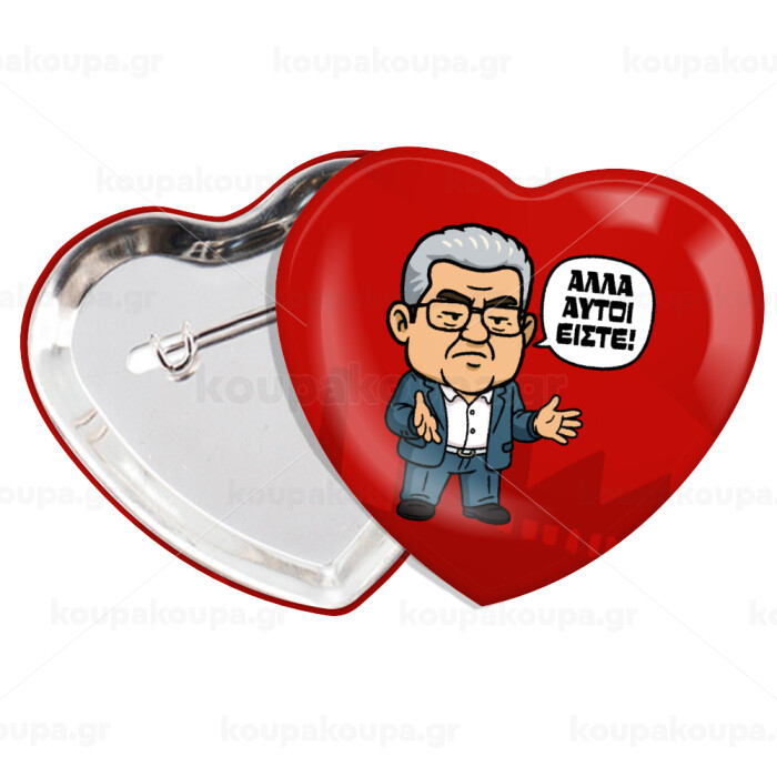 Κουτσούμπας, "Αλλά αυτοί είστε!", Κονκάρδα παραμάνα καρδιά (57x52mm)