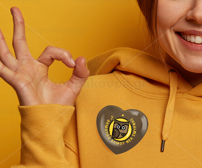 Έμβλημα Σχολικό brown, Κονκάρδα παραμάνα καρδιά (57x52mm)