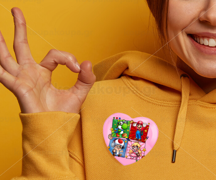 Back to the School Mario & Friends, Κονκάρδα παραμάνα καρδιά (57x52mm)