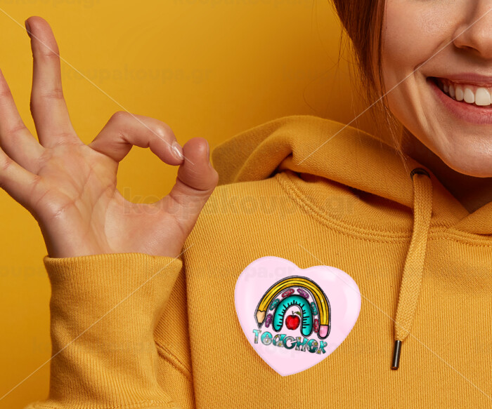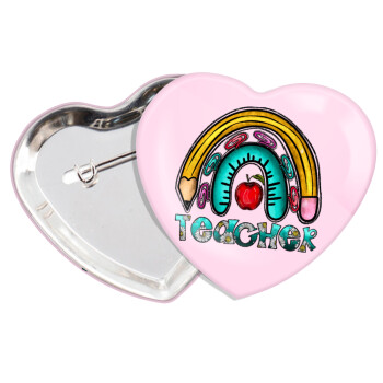 Teacher, Κονκάρδα παραμάνα καρδιά (57x52mm)
