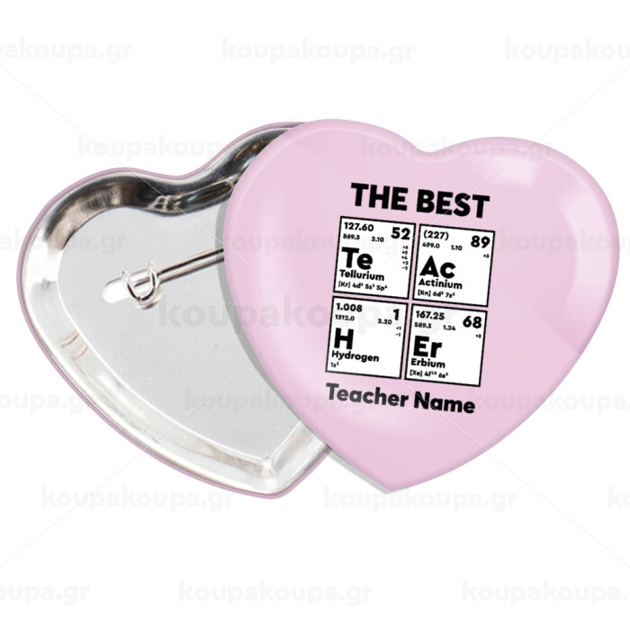 THE BEST Teacher chemical symbols, Κονκάρδα παραμάνα καρδιά (57x52mm)