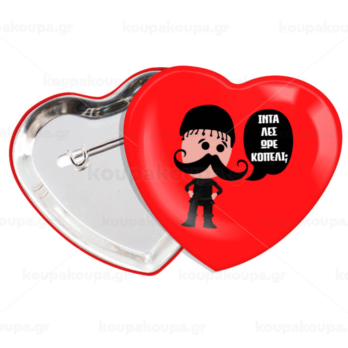 Κρητικός "Ίντα λες ωρέ κοπέλι", Κονκάρδα παραμάνα καρδιά (57x52mm)