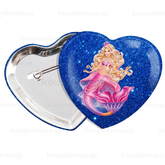 Barbie mermaid blue, Κονκάρδα παραμάνα καρδιά (57x52mm)