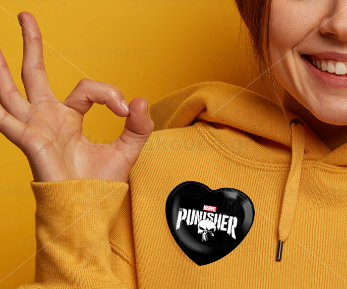 The punisher, Κονκάρδα παραμάνα καρδιά (57x52mm)