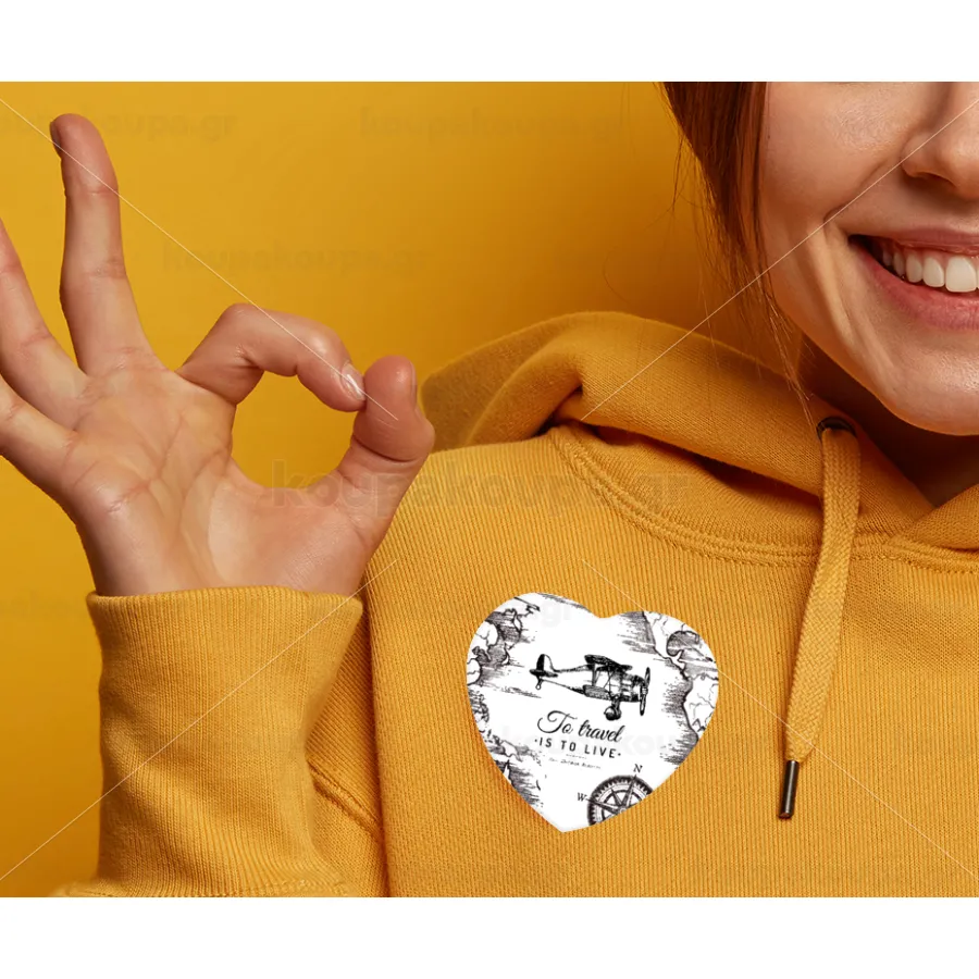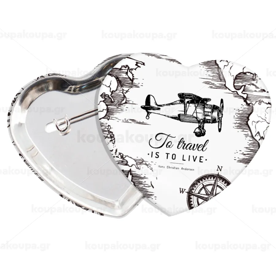To travel is to live, Κονκάρδα παραμάνα καρδιά (57x52mm)