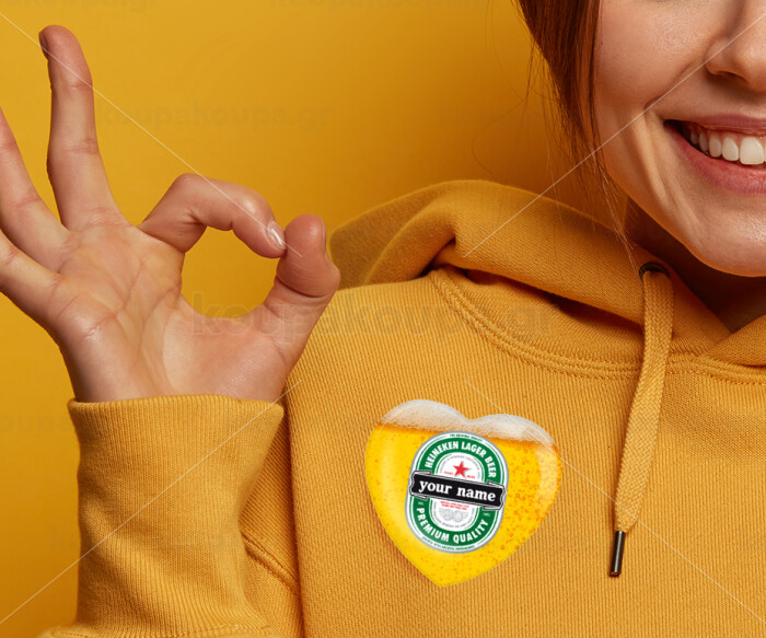 Heineken with name, Κονκάρδα παραμάνα καρδιά (57x52mm)