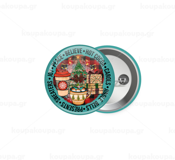 Joy, Peace, Believe, Hot Cocoa, Carols, Κονκάρδα παραμάνα 5cm