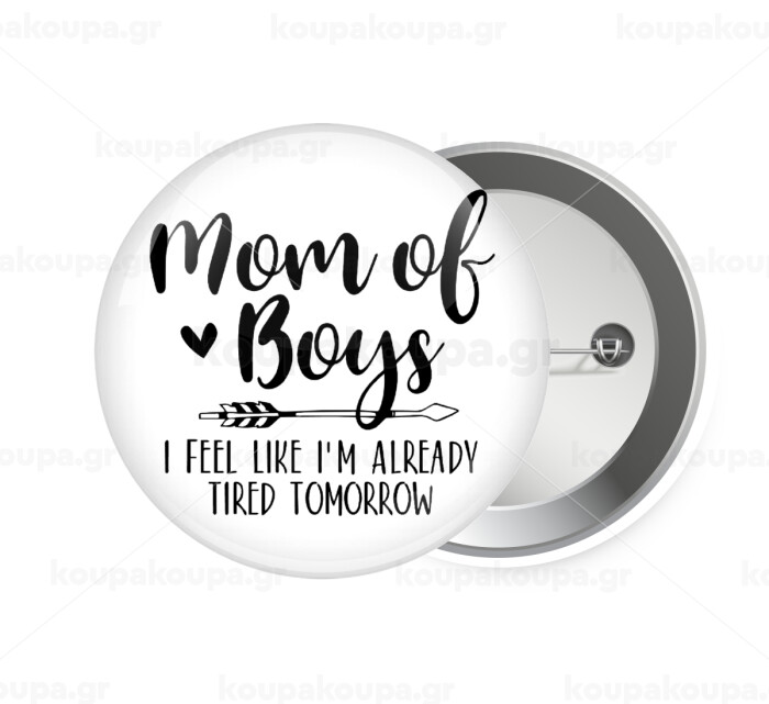 Mom of boys i feel like im already tired tomorrow, Κονκάρδα παραμάνα 7.5cm