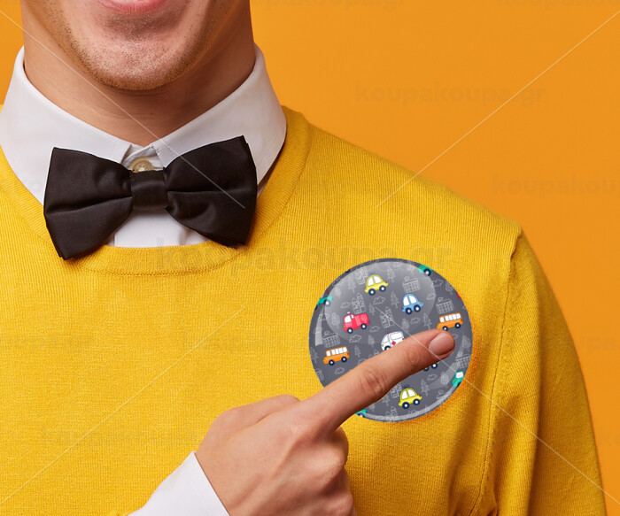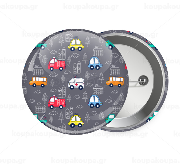 Hand drawn childish set with cars, Κονκάρδα παραμάνα 7.5cm